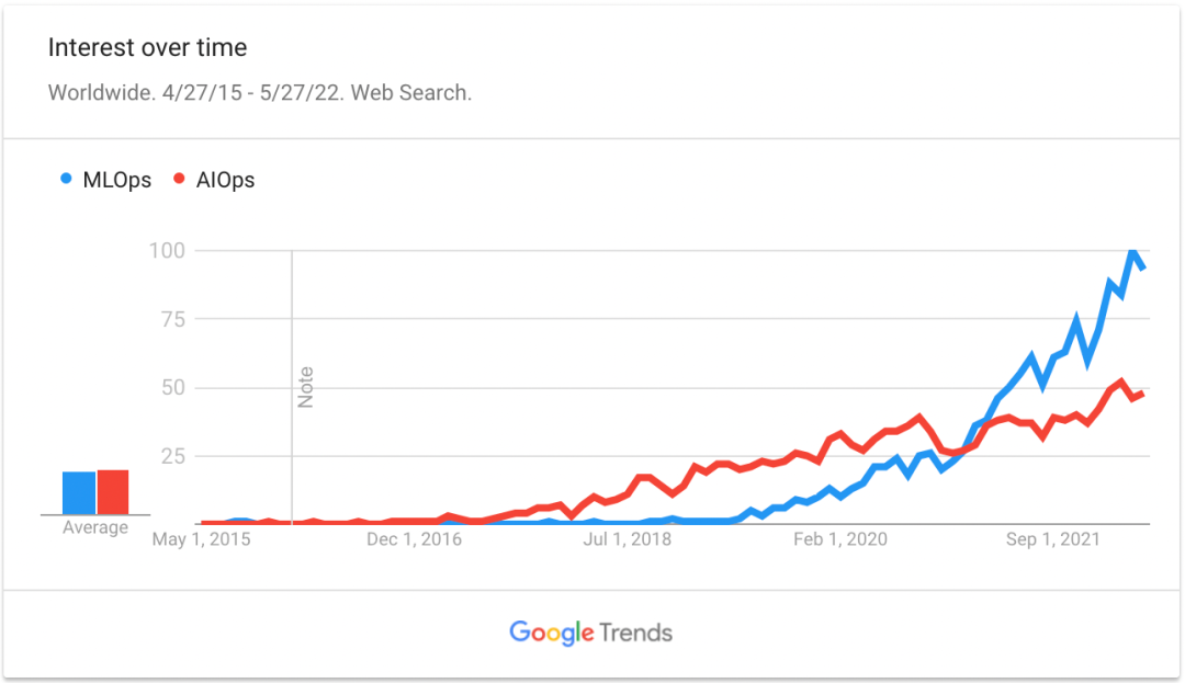 同样重要的是,我们要知道目前这两种学科相对来说还是处于婴儿期。术语 MLOps 和 AIOps 的出现也仅有 6-7 年,相对于其语义、应用程序和好处的可理解性而言,这意味着它们的炒作 / 流行因素目前很高。这种情况可能会持续一段时间,直到技术成熟,用例变得更加普遍和广泛理解。