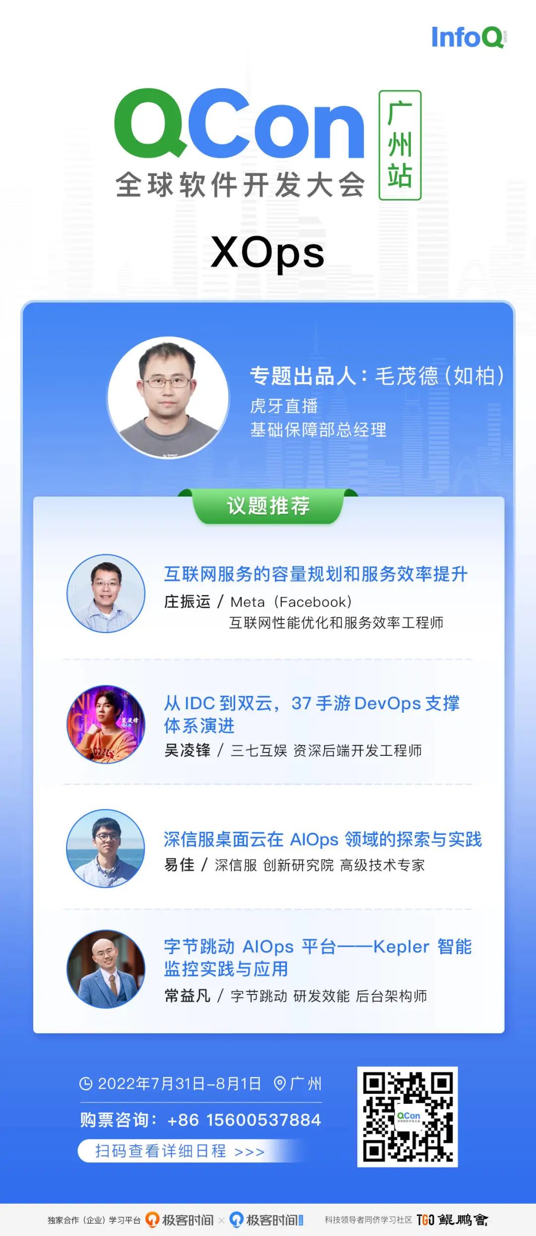 如果你所在的公司不同开发团队之间的合作还不够互通高效,那么不妨来关注下业界不同行业 XOps 的最新实践进展。将于 7 月 31 日 -8 月 1 日举办的 QCon 全球软件开发大会(广州站)上,组委会策划了【XOps】专题,特别邀请了来自 Meta(Facebook)、字节跳动、深信服、三七互娱、虎牙直播等国内外不同业务方向的技术专家,希望给你的团队答疑解惑。