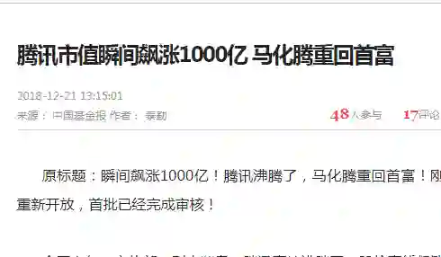 @韦小仇 :12月20号刚给腾讯充了10块钱,第二天就看到新闻《马化腾重回中国首富》