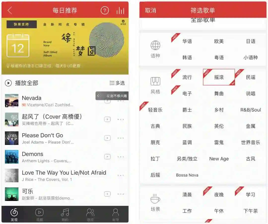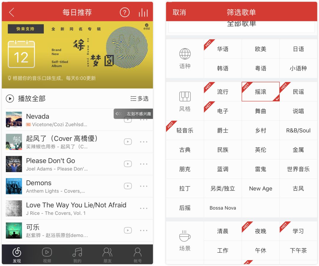 所以仍坚守在网易云音乐的用户们会发现,以往灰色的曲目,在一点点的回到你的歌单里。如《我是歌手》、李宗盛、田馥甄的歌曲,都在网易云音乐中点亮。随着版权合作成为共识与趋势,产品功能和用户体验的比拼更显重要,此时,网易云音乐 5.0 版本也正式上线。