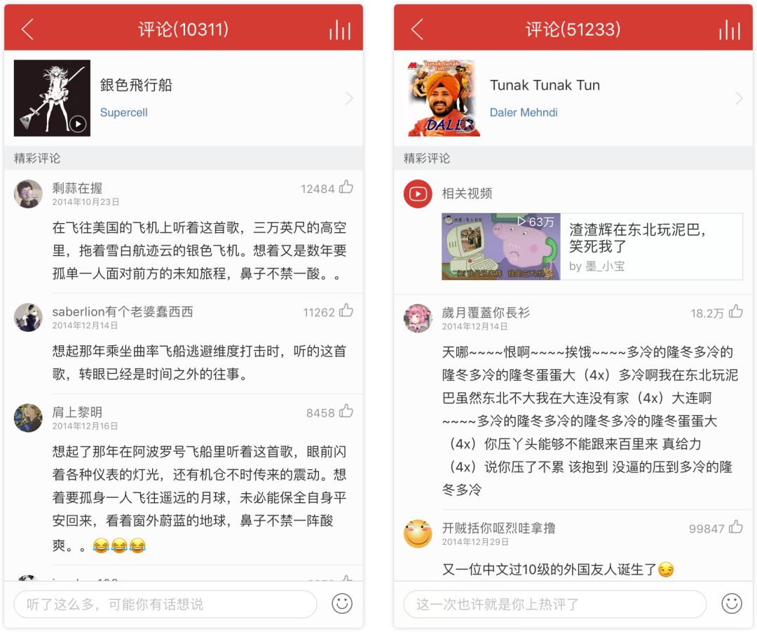 对于每个元素,几乎都带有评论系统,而网易云音乐的评论也是互联网的一大特色,在这些字里行间,可能会看到让你爆笑的段子,也能出现让你落泪的故事,就这样翻着翻着,你的一下午或许就过去了。