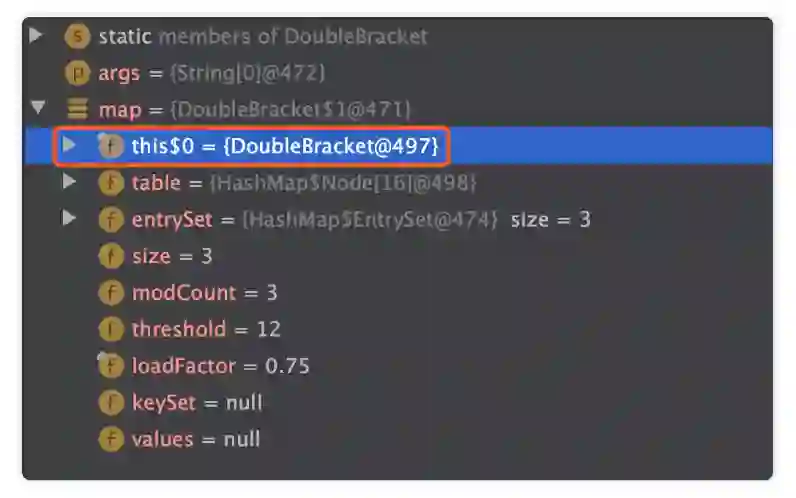 javap -c DoubleBracket\$1.class