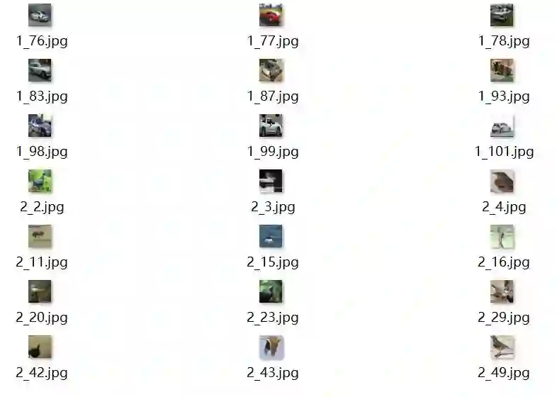 图片都放在data文件夹中,按照label_id.jpg进行命名,例如2_111.jpg代表图片类别为2(鸟),id为111。