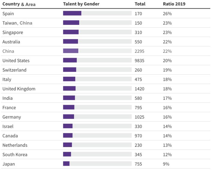 从事AI研究的女性人数仍显不足,但有些国家已经离两性平等的目标更近了一步。