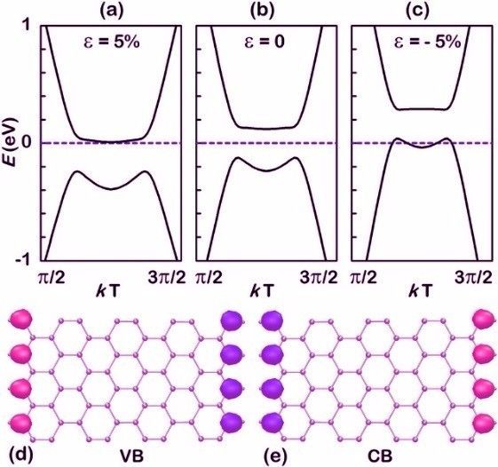 纳米自旋电子学是下一代信息技术的关键领域。如果在材料内,一个自旋方向能导电,而另一个自旋方向绝缘,则把该材料称为半金属材料,并可在一系列自旋电子器件中派上用场。半金属性目前还只在块体材料中得到实现,要在低维材料中实现则极具挑战。来自北京计算科学研究中心的张东波和魏苏怀,应用普适的Bloch定理计算,发现平面内的弯曲可引起锯齿形石墨烯纳米带的不均匀应变,不均匀应变引起自旋劈裂,并使载流子完全自旋极化,从而得到了令人期待的半金属态。这种方法获得的半金属性与先前的不同,具有相当大的半金属带隙和热力学稳定的边态磁序(magnetic order of edge states)。而这一方法仅需在较低应变的面内进行弯曲即可实现,是迄今为止最为实用的方法,还可扩展到其它二维材料体系中,有望以此为基础设计出纳米级自旋电子器件。本文近期发表于npj Computational Materials 3:32 (2017); doi:10.1038/s41524-017-0036-9; 标题与摘要如下,论文PDF文末点击阅读原文可以获取。