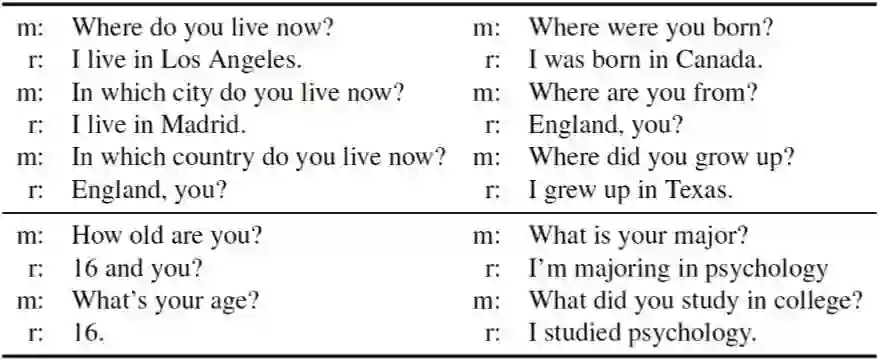 在这一章中,我们讨论了应对不一致问题的方法以及如何为数据驱动的系统赋予合乎逻辑的「人格角色」(persona)以模仿类人的行为,无论是个人助理,个性化的「阿凡达」智能体,亦或是游戏角色。为了这个目的,我们将把 persona 定义为一个人工智能体在对话交流中所扮演或表现出来的一种特征。persona 可以看成身份要素(背景事实或用户外形)、语言行为和交互方式的混合物。persona 是有适应性的,由于智能体在面对不同的人类谈话者的时候需要按交互的需求表现不同的侧面。