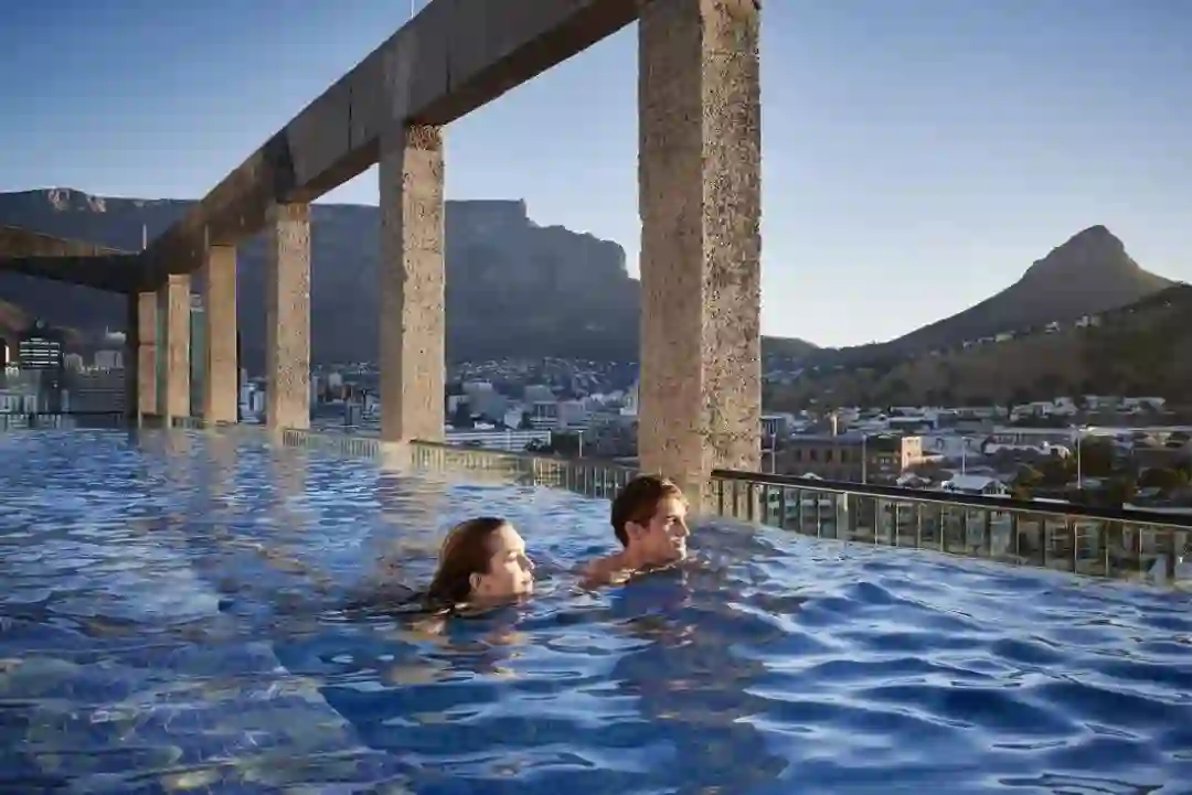 住客在Silo酒店顶层的无限泳池尽情享受。Courtesy of the Silo Hotel
