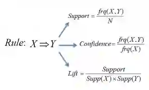 图5:关联规则X> Y的支持度、置信度和lift公式。