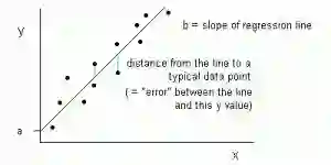 在线性回归中,输入变量(x)和输出变量(y)之间的关系表示为y = ax + b形式的等式。因此,线性回归的目标是找出系数a和b的值。这里,a是截距,b是线的斜率。