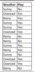 图4:使用朴素贝叶斯预测使用变量“天气”的“游玩”状态。