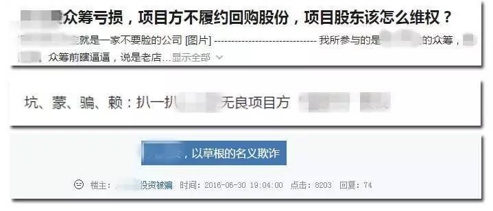 在知乎、百度贴吧、天涯等社交网站上,对众筹平台、众筹项目的揭露、举报并不少见。
