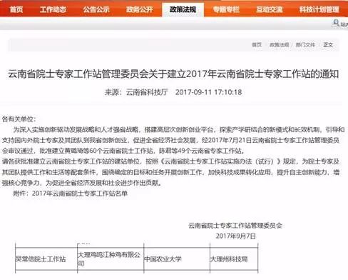 例如,2017年9月,楚雄彝族自治州的科学技术局的网站上发布了云南省批准了60个院士工作站的信息
