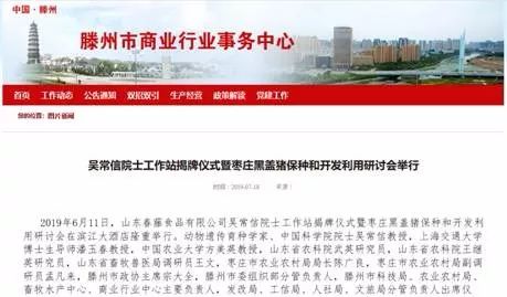 《吴常信院士工作站揭牌仪式暨枣庄黑盖猪保种和开发利用研讨会举行》