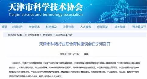 2018年1月9日,天津科学技术协会的网站上发布《天津市种猪行业联合育种座谈会在宁河召开》的新闻