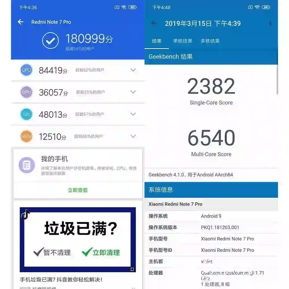 安兔兔跑分180999分,Geekbench4单核跑分2382分,多核跑分6540分,跑分相比Note 7上那颗满血版660提升20%,不过跑分这个东西各位就是看个数,最考验性能的游戏体验,还是要亲自试过才行。