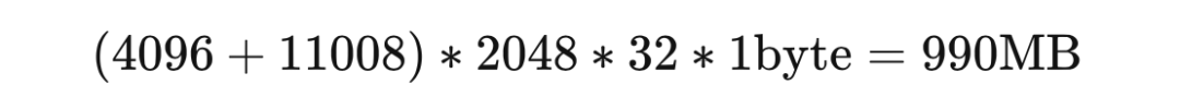 再根据LLaMA的架构(hidden_size = 4096, intermediate_size =11008, num_hidden_layers = 32, context_length = 2048)计算中间变量内存。