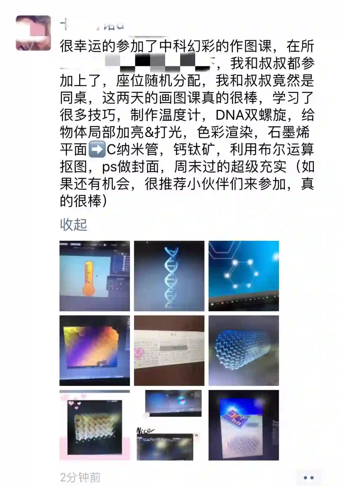 ★特色四:建立专属学员微信群,课前专业助教协助安装软件下载素材包,课后讲师长期群内随时答疑,不定期推送绘图技能提升小视频,帮助学员轻松应对科研绘图中的常见难题。