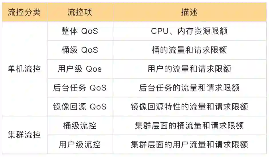 OSS 服务层聚焦数据组织和功能实现,由于底层盘古和有巢的分布式能力,OSS 服务层按照无状态方式设计,从而故障时可以快速切换,提高可用性。但是,由于 OSS 是多租户模型设计,做好 QoS 的监控和隔离,是保障租户可用性的关键。