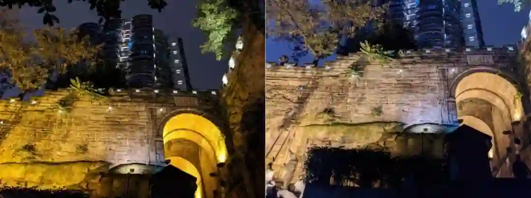 夜视算法加持下(右)画面色彩相比肉眼观感(左)存在明显偏色 | 图:Clyde 使用 Google Pixel 4 拍摄