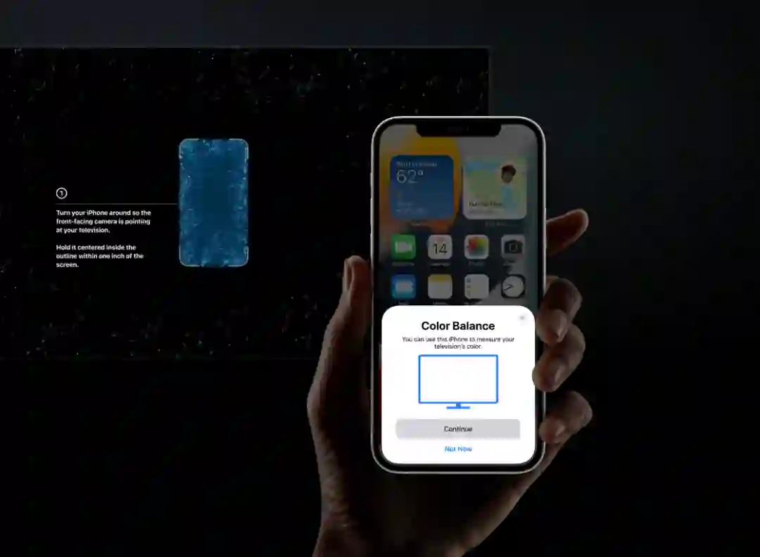这个功能到今天依然有些新鲜,并且并非这类传感器的唯一用途——就像上面提到的那样,去年发布的 Apple TV 4K 就内置一个神奇的屏幕校色功能:将与 Apple TV 配对的 iPhone 正面紧贴电视屏幕,即可自动校准这块屏幕的内容显示颜色,从这个功能要求 iPhone 配有 Face ID 来看,iPhone 在这个过程中应该就是借着多光谱传感器化身成了一台简单的屏幕校色仪。