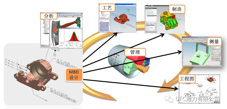 应用MBD技术,以MBD模型作为唯一载体,保证产品定义数据的唯一性,将制造信息传递给企业其他下游部门,改变了“2D工程图+3D模型”的传统模式,实现制造过程的高度集成。