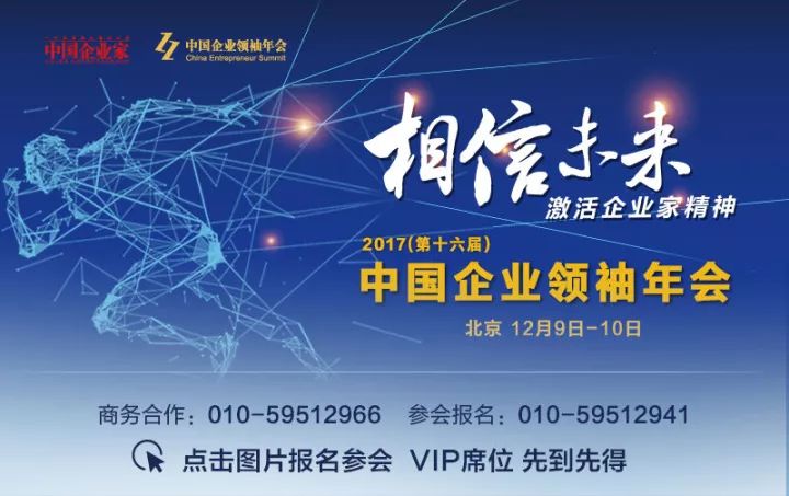 2017(第十六届)中国企业领袖年会将于12月9日至10日在北京举行,VIP席位有限,先到先得,点击图片即可报名。
