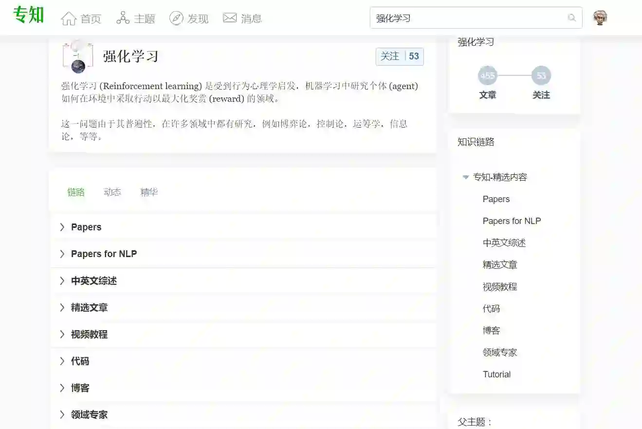 顶端搜索“强化学习” 主题,直接获取查看获得全网收录资源进行查看, 涵盖论文等资源下载链接,并获取更多与强化学习的知识资料!如下图所示。