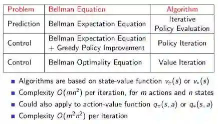 预测问题:在给定策略下迭代计算价值函数。控制问题:策略迭代寻找最优策略问题则先在给定或随机策略下计算状态价值函数,根据状态函数贪婪更新策略,多次反复找到最优策略;单纯使用价值迭代,全程没有策略参与也可以获得最优策略,但需要知道状态转移矩阵,即状态s在行为a后到达的所有后续状态及概率。