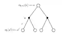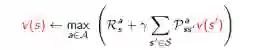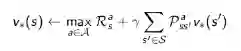 即:一次迭代内,状态s的价值等于前一次迭代该状态的即时奖励与所有s的下一个可能状态s' 的价值与其概率乘积的和,如图示: