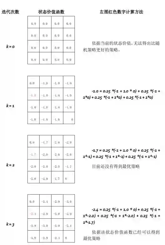 具体方法:同步反向迭代,即在每次迭代过程中,对于第 次迭代,所有的状态s的价值用v_k(s') 计算并更新该状态第