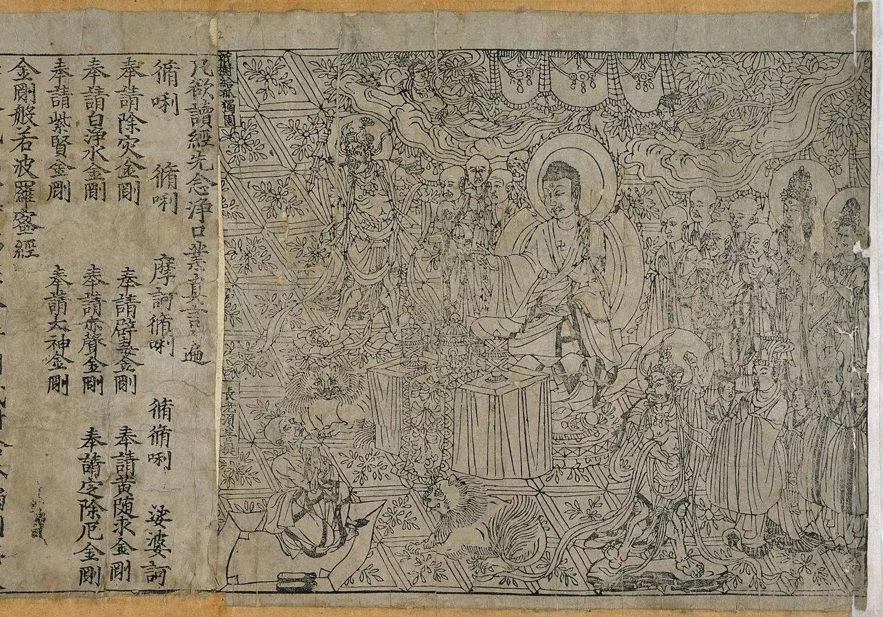 敦煌出土的唐代金刚经(868年),现存最早的印刷品之一,藏于大英图书馆