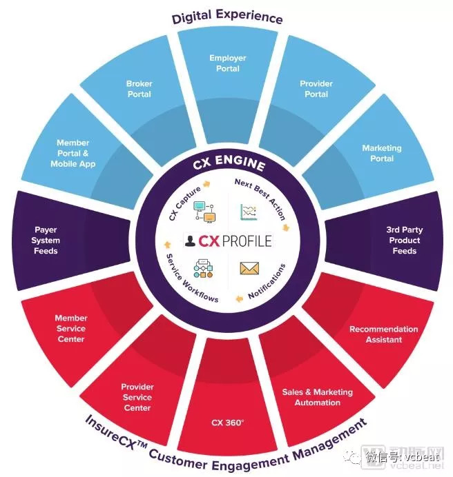 Zipari的产品核心是一整套为医疗保险公司设计的针对用户体验的解决方案,由三部分组成:CX Engine、Digital Experience数字化服务系列产品和InsureCX Customer Engagement用户管理。