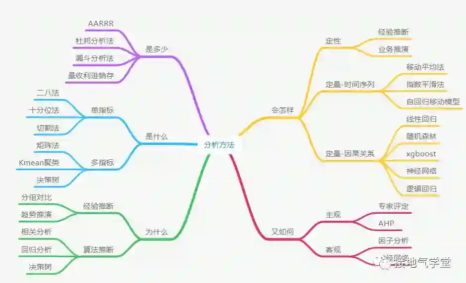 然而,这么说面试官肯定不满意。他们还是期待着你说出一些具体名词的。因此人们总会发明一些新词,比如什么AARRR法,矩阵法,切割法,杜邦分析法等等,甚至还有懒省事的干脆叫业务法(是啊,肯定是业务法啊,不结合业务分析啥)。经常把人都听得头晕了。这里我们结合数据分析能解决的问题,梳理下这些方法。