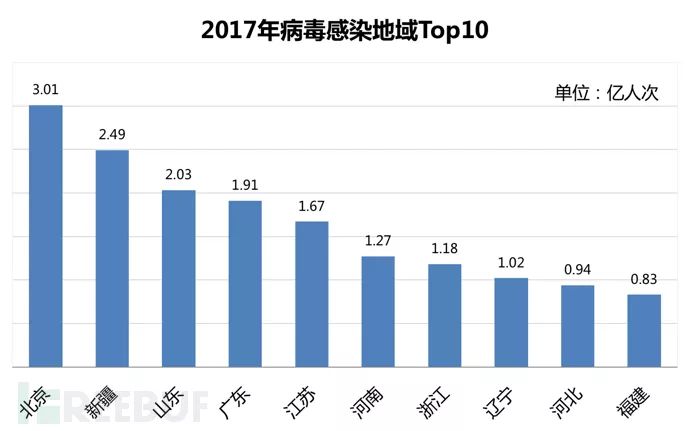 报告期内,北京市病毒感染3.01亿人次,位列全国第一,其次为新疆省2.49亿人次及广东省2.03亿人次。