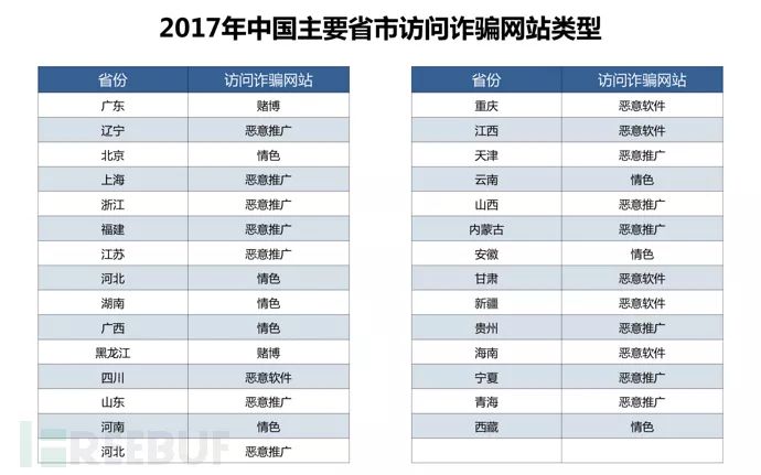 4. 2017年中国主要省市访问诈骗网站类型