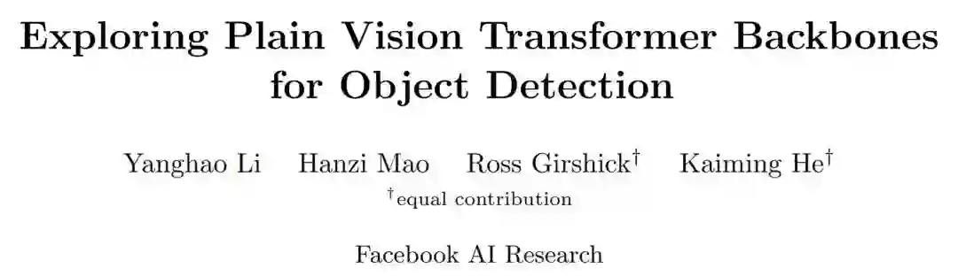 做目标检测就一定需要 FPN 吗?来自 Facebook AI Research 的 Yanghao Li、何恺明等研究者在 arXiv 上上传了一篇论文,证明了将普通的、非分层的视觉 Transformer 作为主干网络进行目标检测的可行性。 >>加入极市CV技术交流群,走在计算机视觉的最前沿