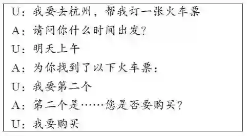 对话交互分成两个阶段,第一阶段,通过多轮对话交互,把用户的需求收集完整,得到结构化的信息(出发地、目的地、时间等);第二阶段就是请求服务,接着还要去做选择、确定、支付、购买等后面一系列的步骤。