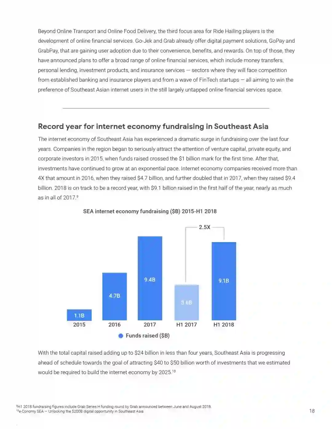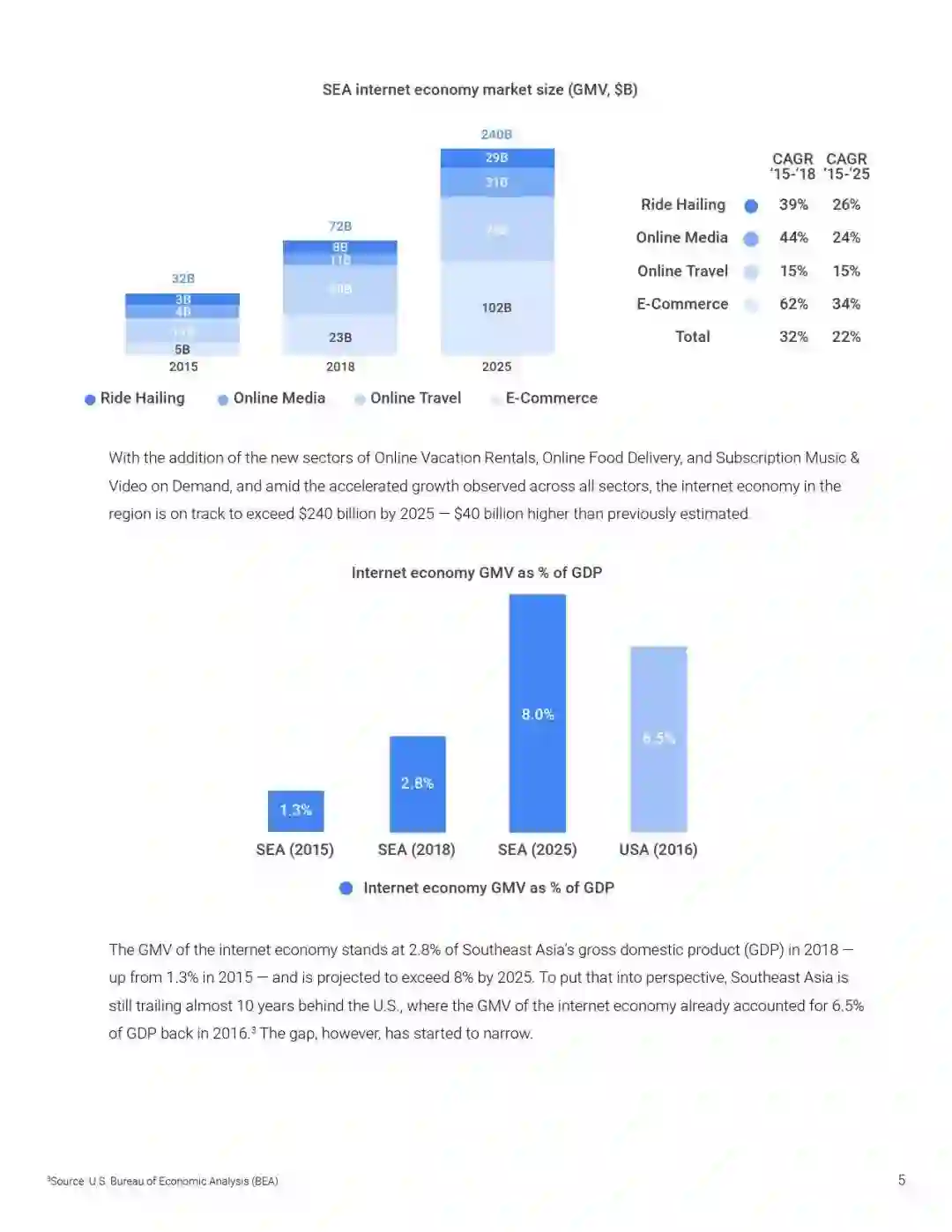 2018年东南亚网络经济达到720亿美元,到2015年将超过2400亿美元,比此前的预测高出400亿美元。其中,包括在线旅游、电子商务、网络媒体和网约车。