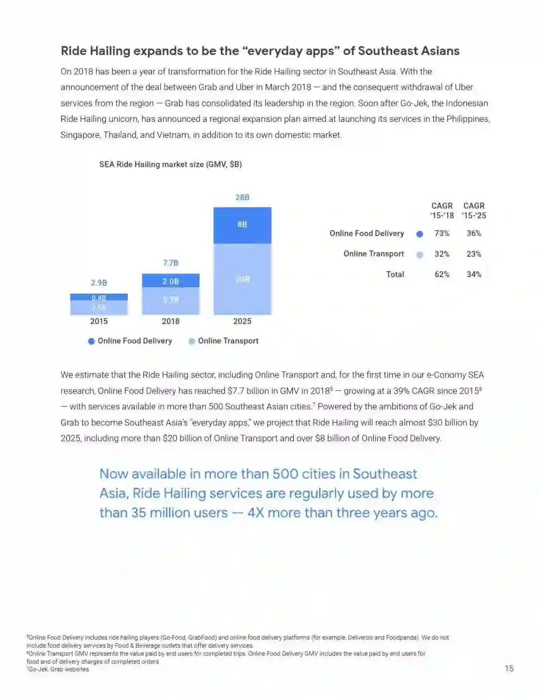 现在,网约车已经覆盖东南亚超过500座城市,用于超过3500万人,是三年前的4倍。