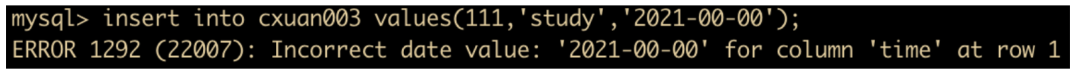 insert into cxuan003 values(111,'study','2021-00-00');