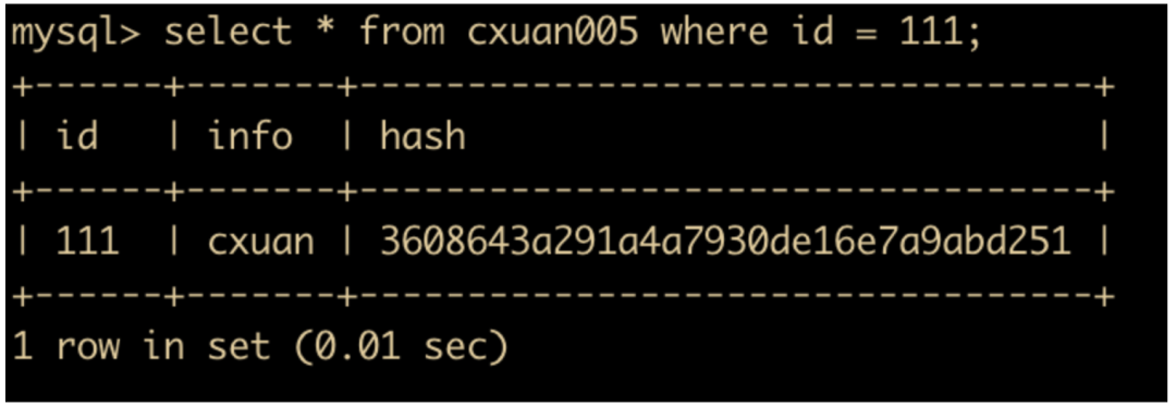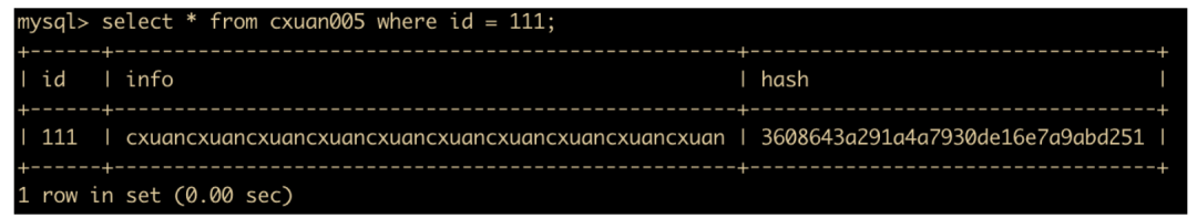 select * from cxuan005 where id = 111;