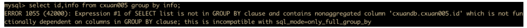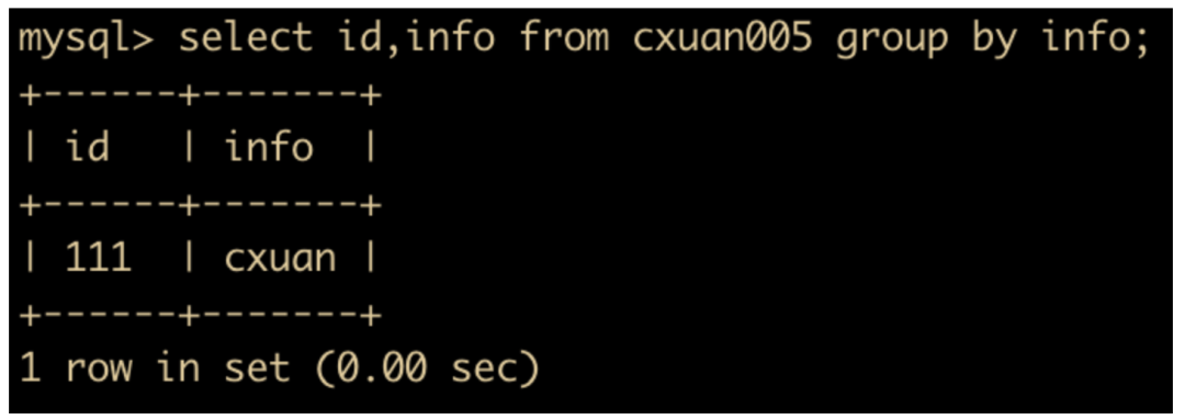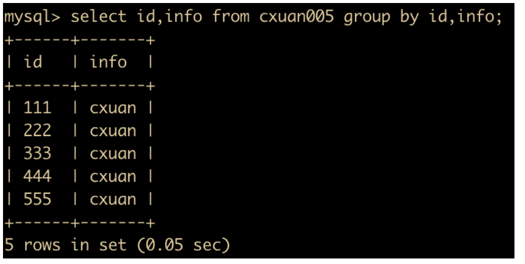 select id,info from cxuan005 group by id,info;
