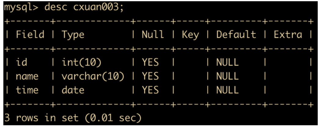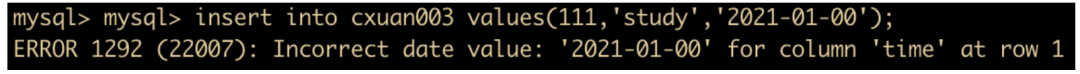 insert into cxuan003 values(111,'study','2021-01-00');