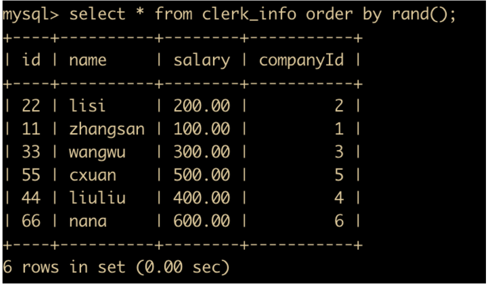 select * from clerk_info order by rand();