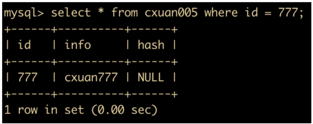 select * from cxuan005 where id = 777;