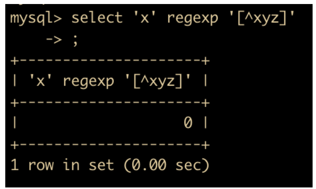 select 'x' regexp '[^xyz]';