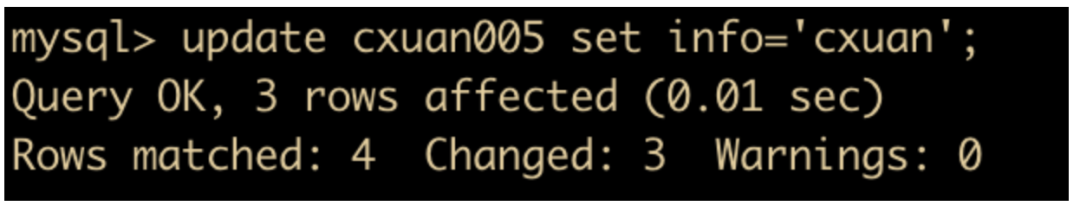 update cxuan005 set info='cxuan';