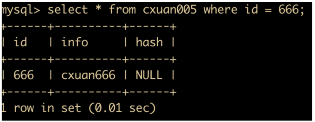select * from cxuan005 where id = 666;