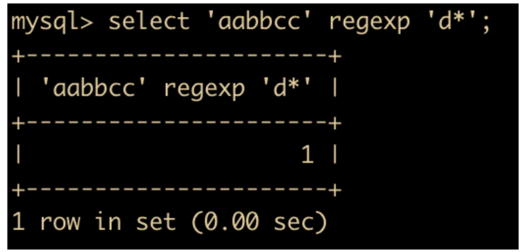 select 'aabbcc' regexp 'd*';