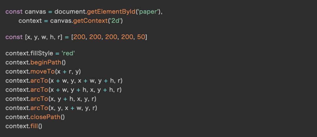 我们知道,Canvas Api 可以很灵活地绘制各种矢量图形到画布上,但是 Canvas Api 本身比较低级,比如我们要在画布中央绘制一个带有圆角的红色矩形,使用 Canvas 原生的 Api ,需要这样: